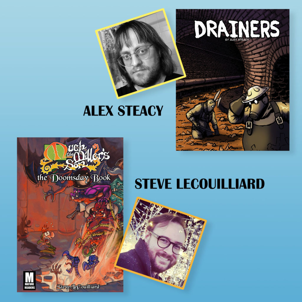 As well from 5-6 PST Kathleen Gros will be hosting a selection of comic readings by Alex Steacy (Drainers) and Steve LeCouilliard (Much the Miller’s Son) followed by a Q&A with the creators.